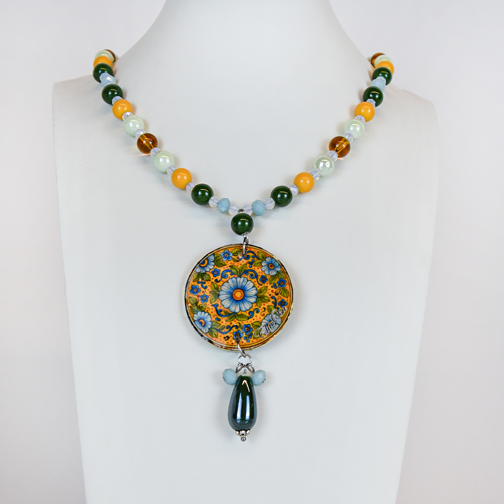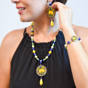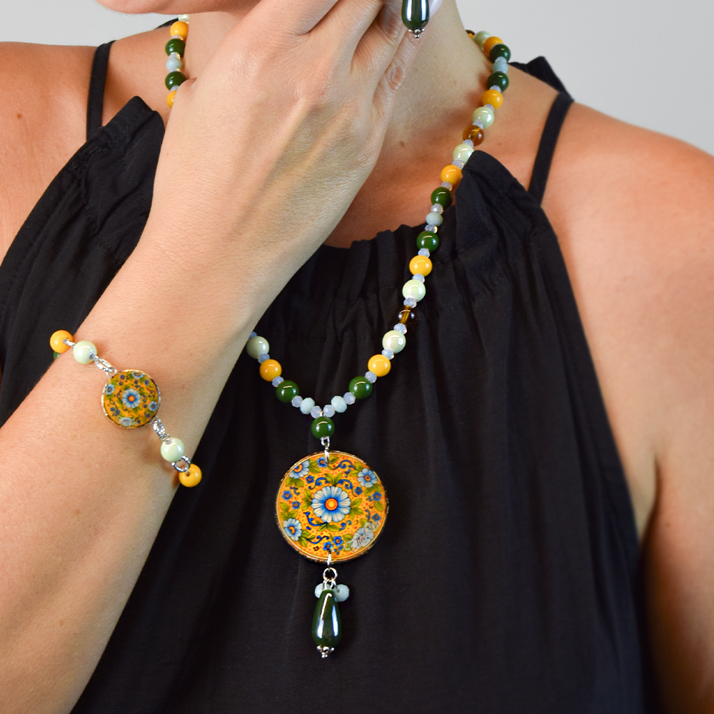 Ho acquistato la collana con i dettagli in ceramica e ne sono rimasta incantata! I colori sono vividi, la fattura artigianale si percepisce subito. La indosso spesso anche al lavoro e tutti mi chiedono dove l’ho presa.