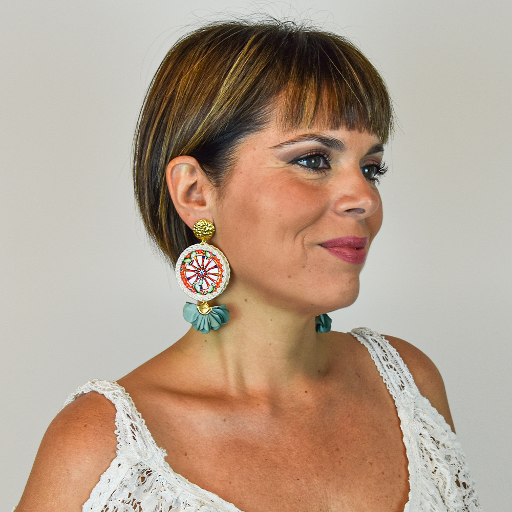 Angela Torrisi, anima creativa del marchio, crea ogni gioiello come un racconto che intreccia la luce del Mediterraneo e le atmosfere vivaci dei mercatini del centro storico di Catania.